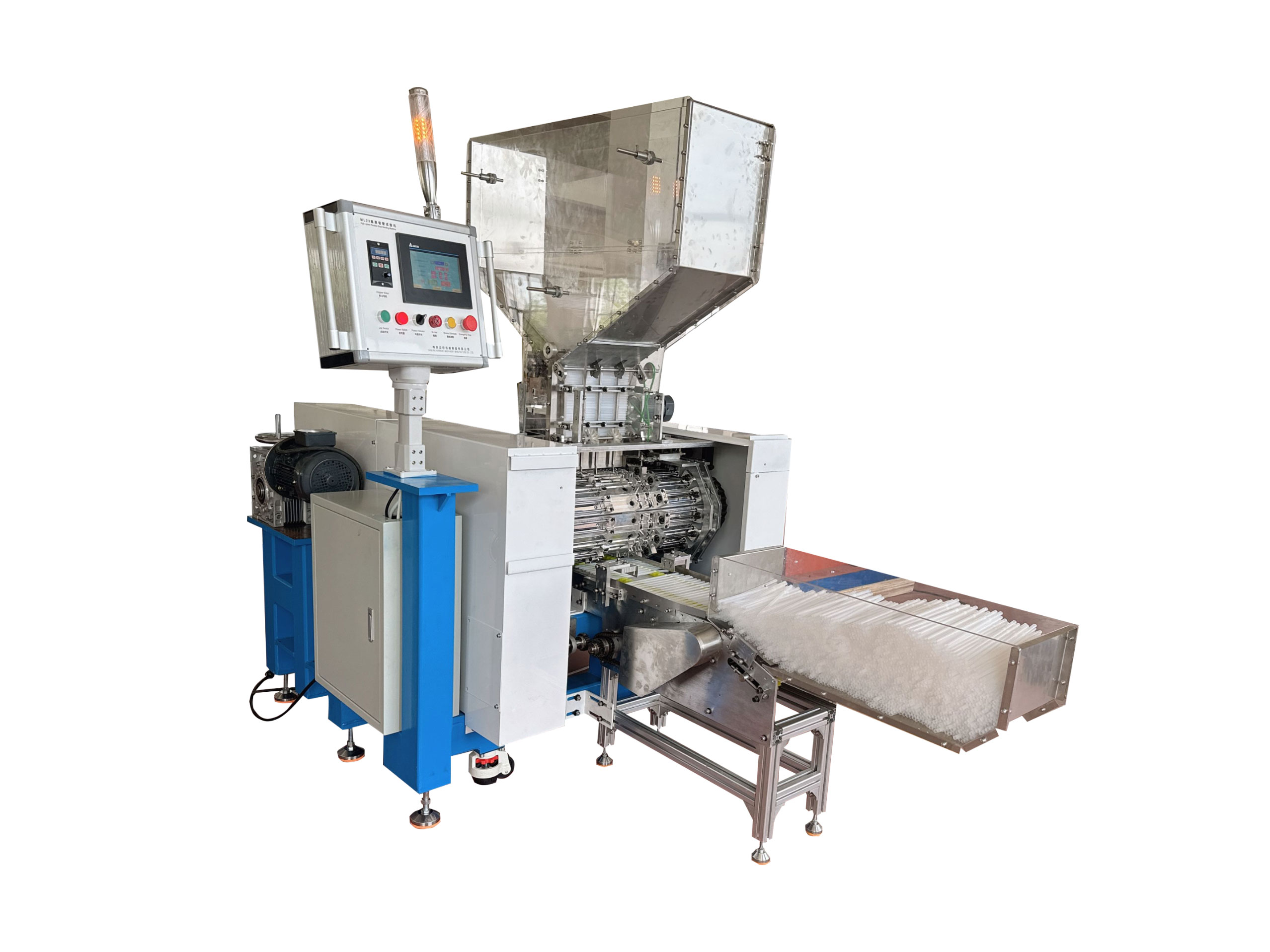 吸管擠出機產(chǎn)量高,65 機擠出量可高達100kg/h(約1800支/min)